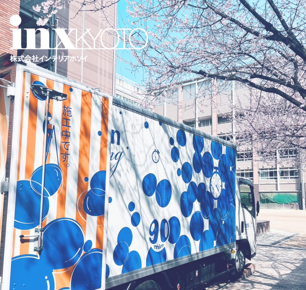 専用のランドリー車でお伺いし、取外しや取付けも含めて現地でクリーニングを行う、短時間で対応させていただくサービスと、